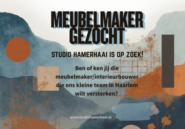 Studio Hamerhaai is een meubelmakerij / interieurbouwer die veel kasten op maat maakt. Maar ook tafels, enorme houten robots en verlichting. We doen alles zo duurzaam mogelijk. We hergebruiken bijvoorbeeld veel museum transportkisten. We hebben een klein hecht team, en je maakt het ontwerp-, maak- en plaatsproces van A tot Z mee. We hebben veel aanvragen, daarom hebben we een vacature voor een interieurbouwer/ meubelmaker in onze werkplaats in Haarlem!